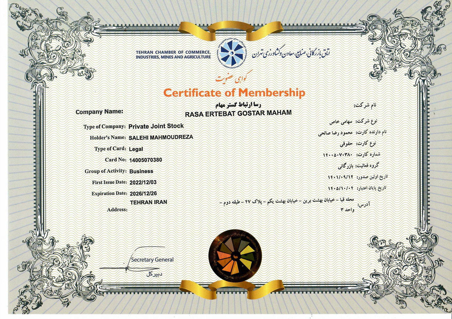 گواهینامه‌ها و تقدیرنامه‌ها
